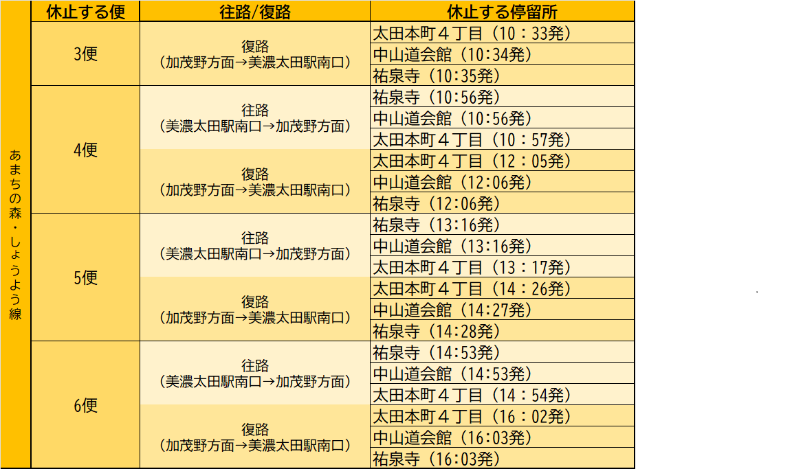 対象の停留所:太田本町4丁目、中山道会館、祐泉寺